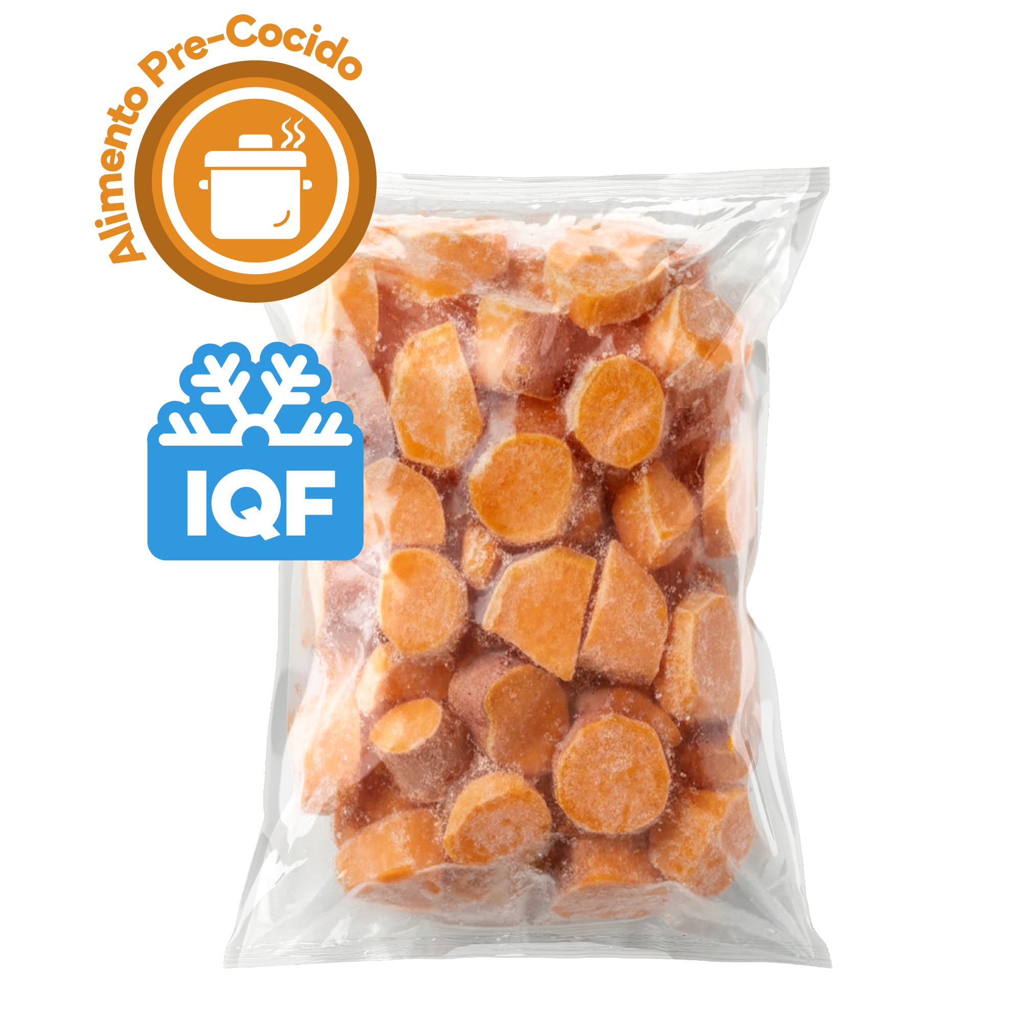 Camote peruano seleccionado de alta calidad, que conserva su característico color anaranjado intenso, con un sabor dulce y aroma distintivo del camote fresco. El proceso de elaboración es realizado bajo estrictos estándares de calidad e higiene, asegurando la correcta manipulación y conservación del producto, donde cada etapa es controlada para mantener sus propiedades naturales y su textura suave.
